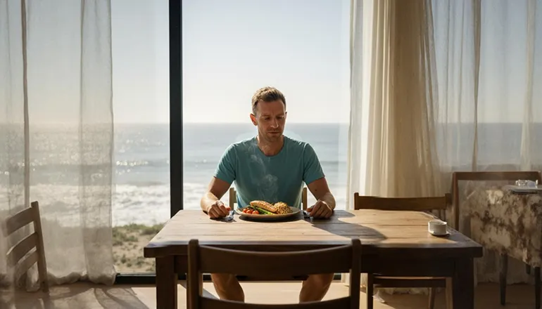 7:00 a.m. — Fuerza y yoga para comenzar. El vocalista inicia su jornada con yoga, surf y levantamiento de pesas. Harding, de 55 años, acostumbrado a entrenamientos de resistencia, notó beneficios inmediatos en energía y ánimo. Reconoció que esta etapa fue la más positiva del día: exigente, sí, pero revitalizante.