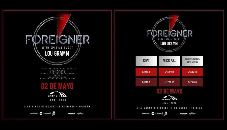 Además, el concierto en Lima será especial no solo por la despedida de la banda, sino porque contará con Lou Gramm, la voz original de Foreigner, quien interpretará los clásicos que marcaron a generaciones de fanáticos del rock.