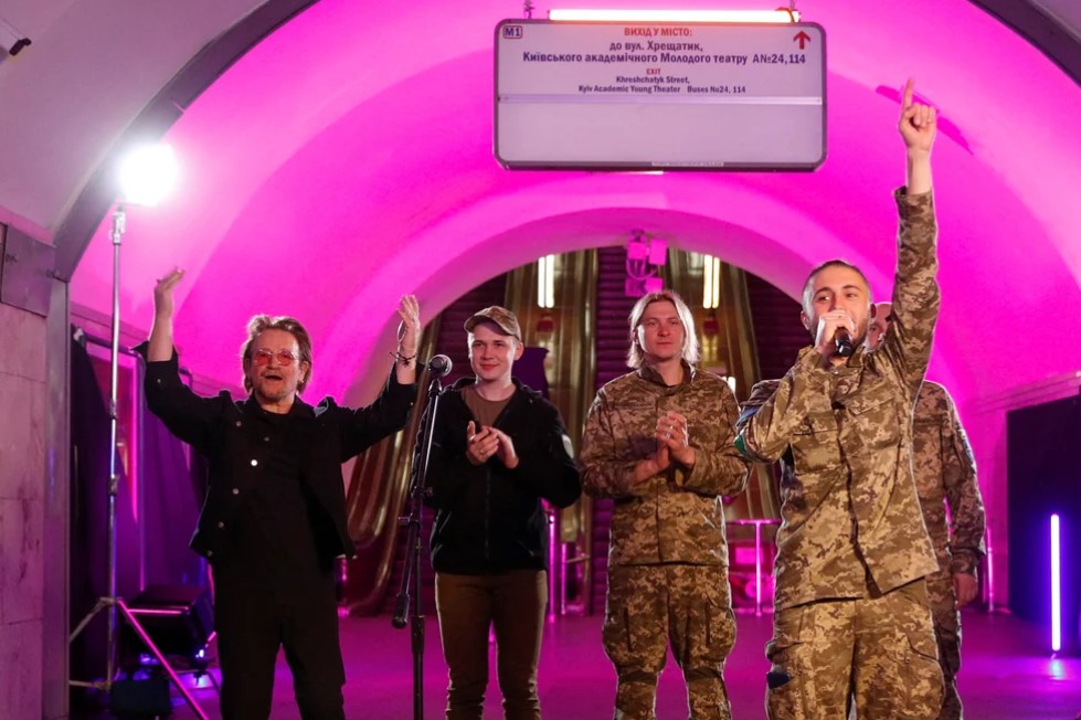 De esa forma, desde la plataforma de una estación del metro de la capital ucraniana, Bono dio un emotivo show. Esto, junto al guitarrista de The Edge, interpretaron varios clásicos del grupo, como «Sunday Bloody Sunday», «Desire» o «With or without you».