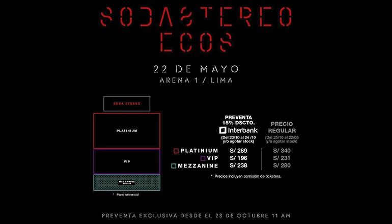 La preventa comenzará el jueves 23 de octubre a las 11 a. m. y se efectuará únicamente a través del canal digital autorizado por la productora. Es requisito contar con tarjeta Interbank para acceder a la promoción.