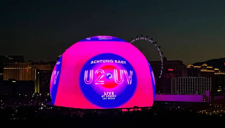 Con 112 metros de altura y 157 metros de ancho, la estructura de Las Vegas es considerada la esfera más grande del mundo. En su interior, alberga lo que se considera la pantalla LED envolvente de más alta resolución del planeta. Su exterior está equipado con 1.2 millones de LEDs del tamaño de un disco de hockey, que pueden programarse para mostrar imágenes dinámicas a gran escala, supuestamente la más grande del mundo.